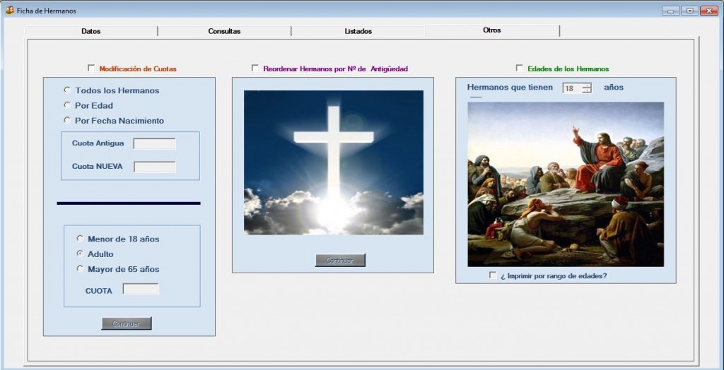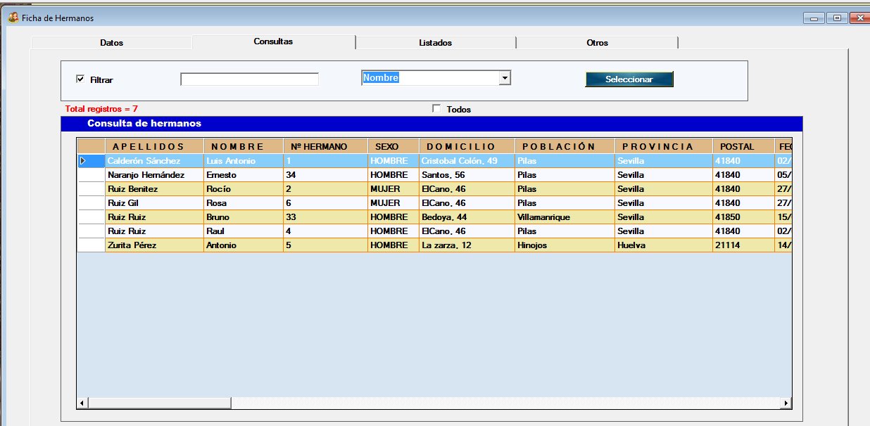 Tiene 15 consultas distintas y 33 listados, además de cambio automático de cuotas, reordenación por antigüedad y edades de los hermanos.