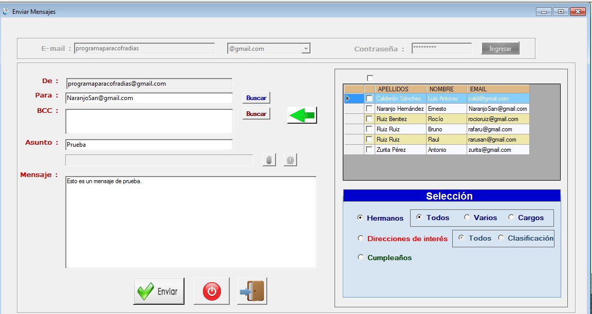 - CORREO ELECTRÓNICO: Módulo para enviar correos masivos a hermanos, direcciones de interés, cargos, cumpleaños, etc.